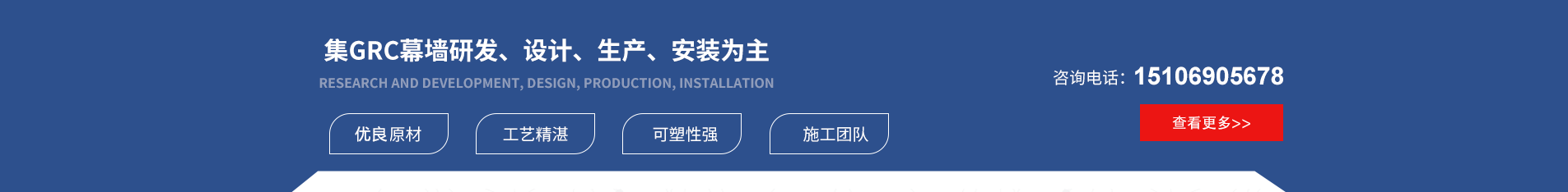GRC構(gòu)件具有高強(qiáng)度、高韌性、耐水.耐火.輕質(zhì)等優(yōu)勢,可應(yīng)用于墻板、吊頂板、屋面板,永久性模板及外裝飾構(gòu)件等,既能縮短施工時間又節(jié)約